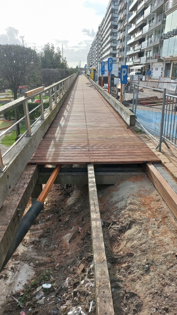 In Blankenberge deden wij de renovatiewerken van het houten wandelpad in de Franchommelaan ter hoogte van het Leopoldpark. Het ging om een vernieuwing van alle dekplanken en enkele steunbalken.