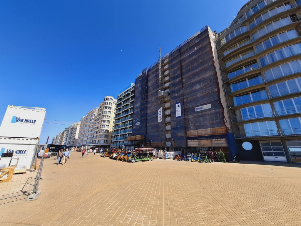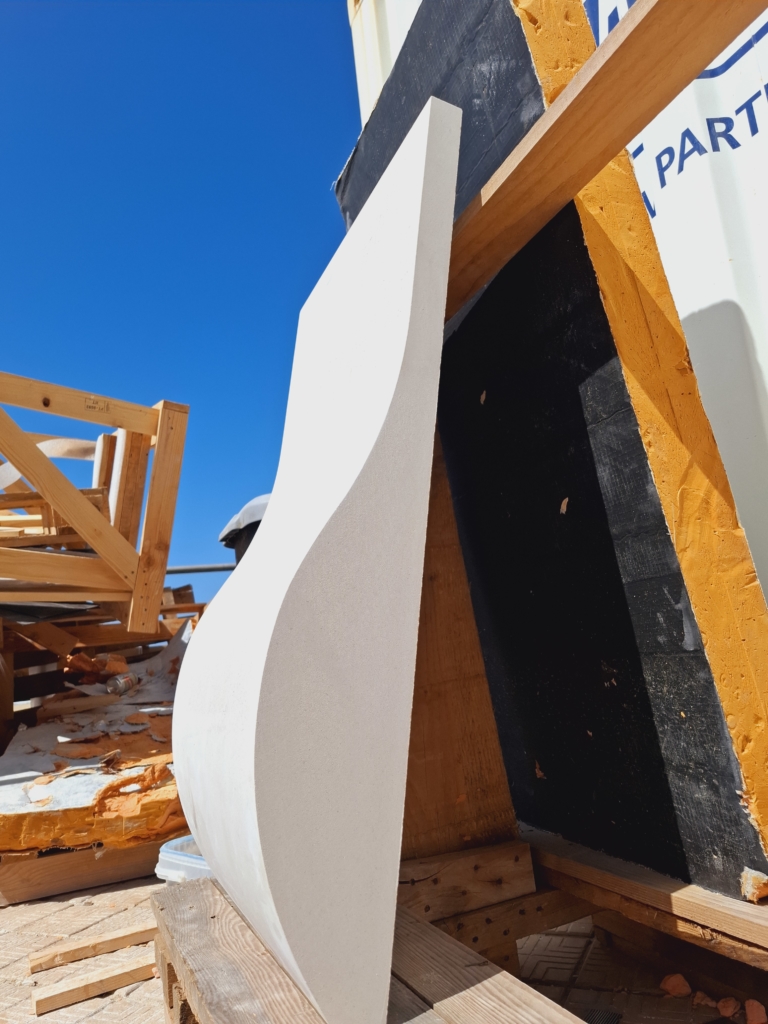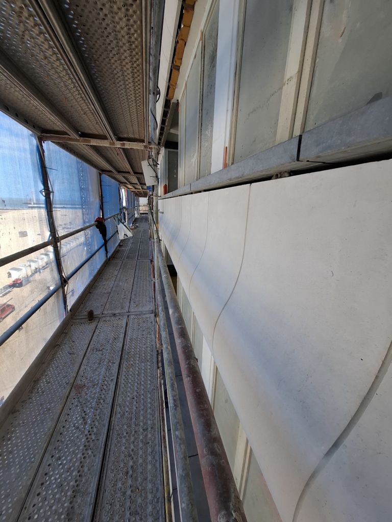 Op Residentie Vendome in Oostende zijn we volop bezig om de gevel terug die charmante, originele look te geven. De Crema Lensia-panelen krijgen opnieuw hun iconische “buikje”: een knipoog naar de stijl van vroeger, maar met de technieken van vandaag. Dit in samenwerking met architect Elegast Dobbelaere